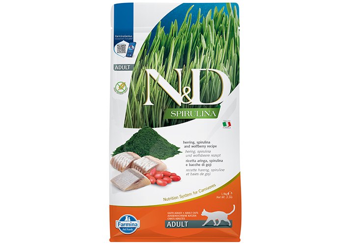 Farmina N&D Spirulina Herring & Wolfberry Adult Сухой корм Фармина для взрослых кошек Сельдь и ягоды годжи 1,5 кг