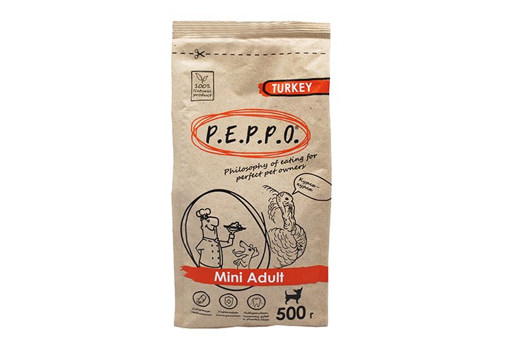 P.E.P.P.O. Adult Mini Turkey Сухой корм Пеппо для взрослых собак Мелких пород Индейка 500 г