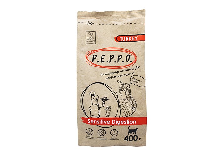 P.E.P.P.O. Sensitive Digestion Turkey Сухой корм Пеппо для кошек с Чувствительным пищеварением Индейка 400 г