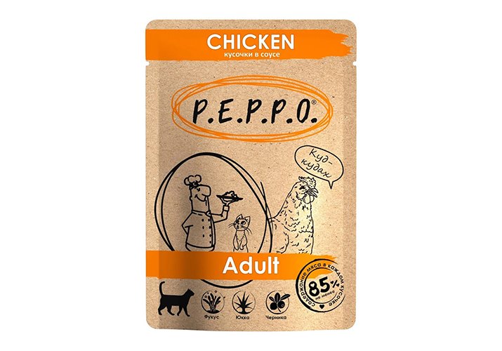 P.E.P.P.O. Chicken Влажный корм Паучи Пеппо для кошек Курица кусочки в соусе (цена за упаковку) 85г х 24шт
