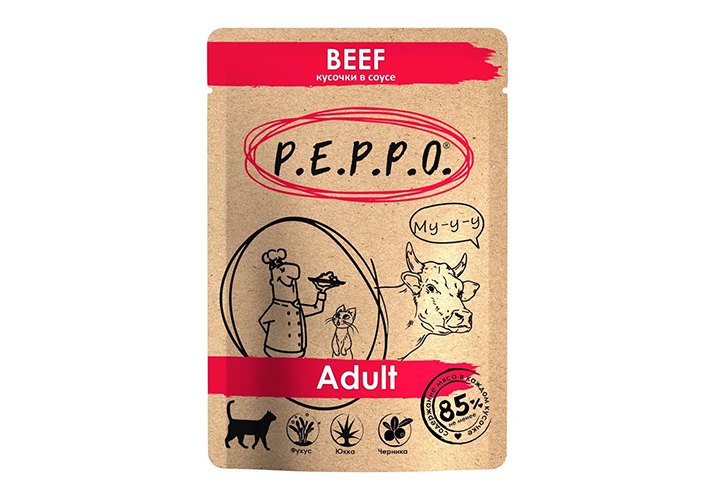 P.E.P.P.O. Beef Влажный корм Паучи Пеппо для кошек Говядина кусочки в соусе (цена за упаковку) 85г х 24шт