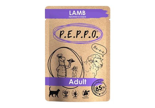 P.E.P.P.O. Lamb Влажный корм Паучи Пеппо для кошек Ягненок кусочки в соусе (цена за упаковку) 85г х 24шт