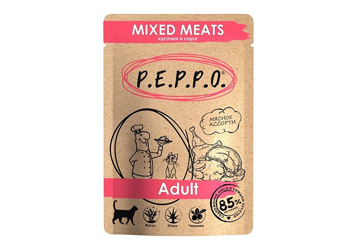 P.E.P.P.O. Mixed Meats Влажный корм Паучи Пеппо для кошек Мясное ассорти кусочки в соусе (цена за упаковку) 85г х 24шт