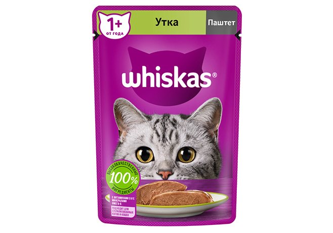 Whiskas Паучи Вискас для взрослых кошек Утка паштет (цена за упаковку) 75г х 28шт
