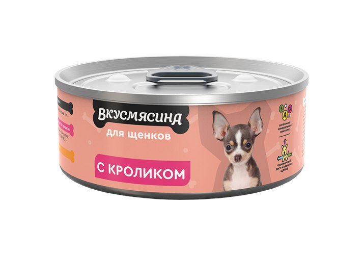 Вкусмясина Влажный корм Консервы для Щенков с Кроликом (цена за упаковку) 100г х 6шт