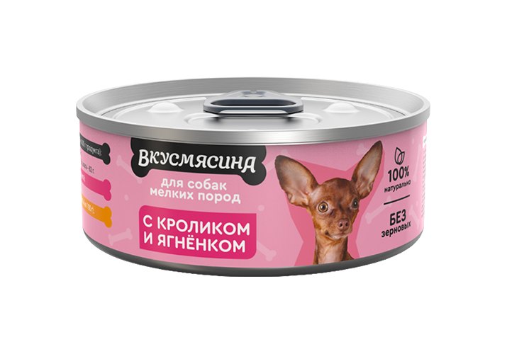 Вкусмясина Влажный корм Консервы для собак Мелких пород с Кроликом и ягненком (цена за упаковку) 100г х 6шт