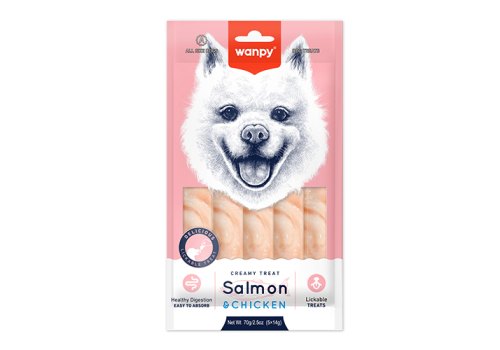Wanpy Creamy Treat Salmon Chicken Лакомство Ванпи для собак Нежное пюре из Лосося и курицы 14г х 5шт