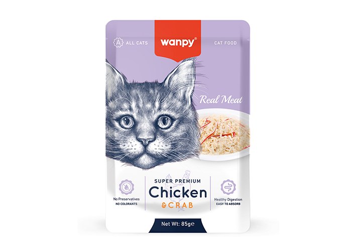 Wanpy Chicken & Crab Влажный корм Паучи Ванпи для кошек из Курицы и краба (цена за упаковку) 85г х 12шт