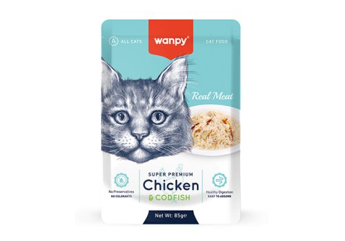Wanpy Chicken & Codfish Влажный корм Паучи Ванпи для кошек из Курицы и трески (цена за упаковку) 85г х 12шт