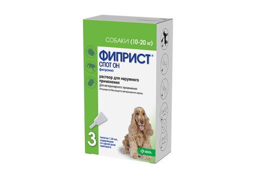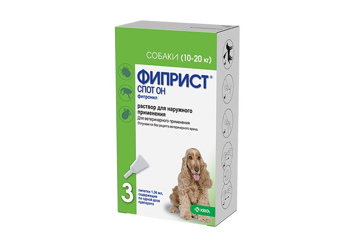 Krka Фиприст спот он Капли на холку для собак весом от 10 до 20 кг от Иксодовых клещей, блох, вшей и власоедов 3 пипетки