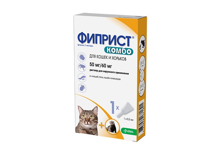 Krka Фиприст Комбо Капли на холку для кошек от Иксодовых клещей, блох, вшей и власоедов 1 пипетка