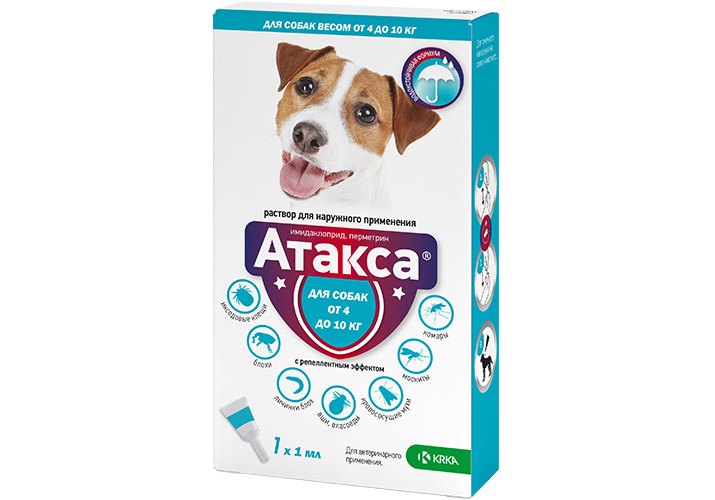 Krka Атакса Капли на холку для собак весом от 4 до 10 кг от Иксодовых клещей, блох, вшей, власоедов, комаров и кровососущих мух 1 мл
