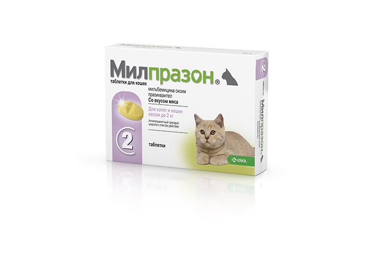 Krka Милпразон Комбинированный антигельминтный препарат для Котят и кошек весом менее 2 кг 4мг/10мг 2таб
