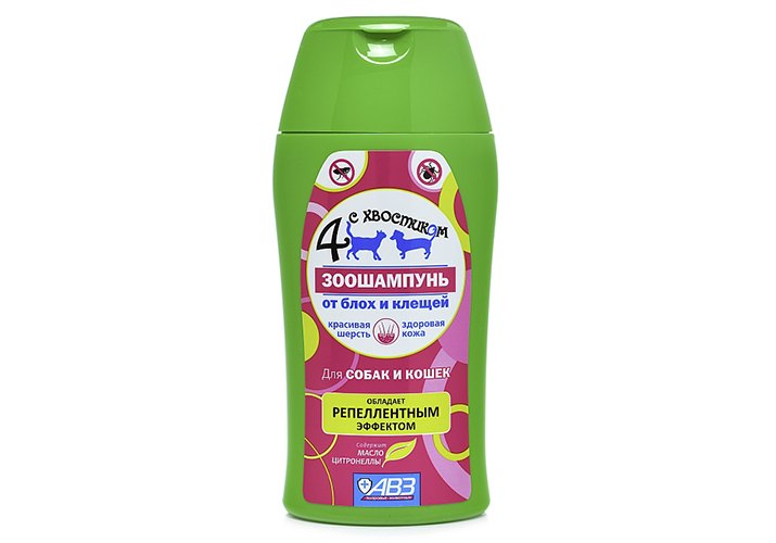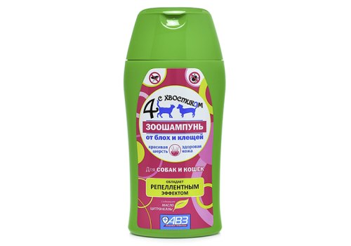 4 с хвостиком Шампунь для собак и кошек Репеллентный от блох и клещей с маслом цитронеллы 180мл