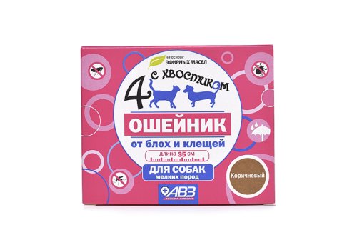 4 с хвостиком Ошейник Репеллентный для собак Мелких пород защита от блох до 3 месяцев и клещей до 4 недель 35 см