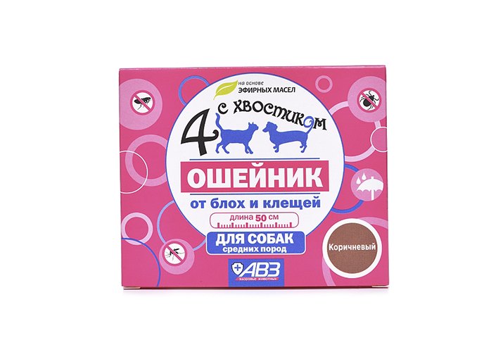 4 с хвостиком Ошейник Репеллентный для собак Средних пород защита от блох до 3 месяцев и клещей до 4 недель 50 см