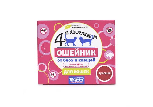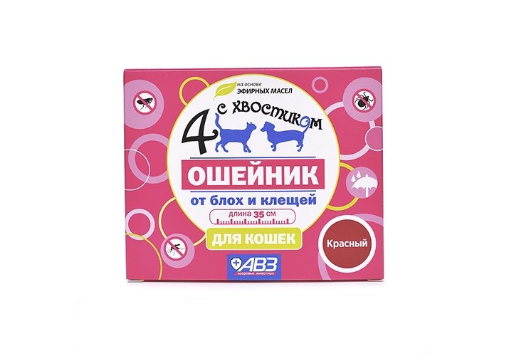 4 с хвостиком Ошейник Репеллентный для кошек защита от блох до 3 месяцев и клещей до 4 недель Красный 35 см