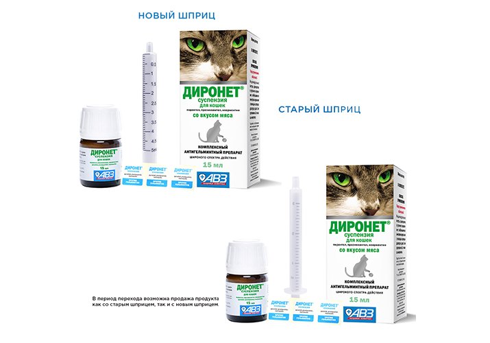 АгроВетЗащита Диронет Суспензия для кошек Антигельминтный препарат со вкусом мяса 15 мл