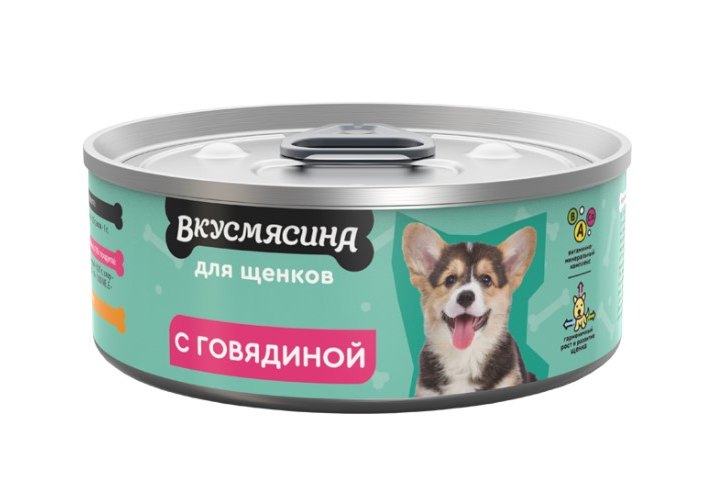Вкусмясина Влажный корм Консервы для Щенков с Говядиной (цена за упаковку) 100г х 6шт