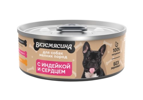 Вкусмясина Влажный корм Консервы для собак Мелких пород с Индейкой и сердцем (цена за упаковку) 100г х 6шт