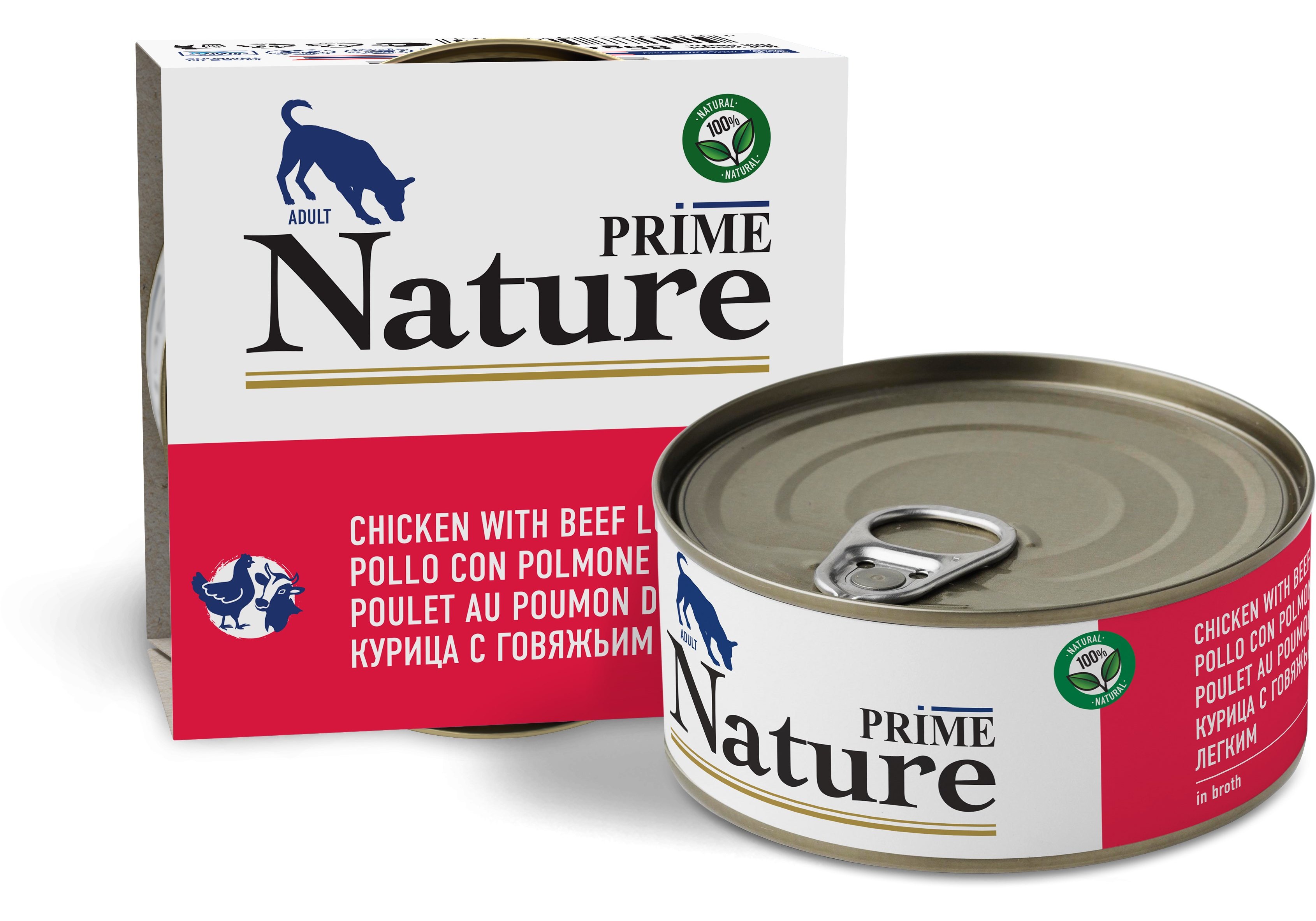 Prime Nature Dog Adult Влажный корм Консервы Прайм Нейча для взрослых собак Курица с говяжьим легким в бульоне (цена за упаковку) 150г х 24шт