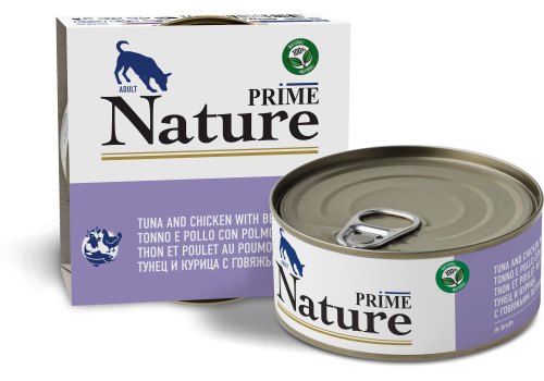 Prime Nature Dog Adult Влажный корм Консервы Прайм Нейча для взрослых собак Курица и тунец с говяжьим легким в бульоне (цена за упаковку) 150г х 24шт