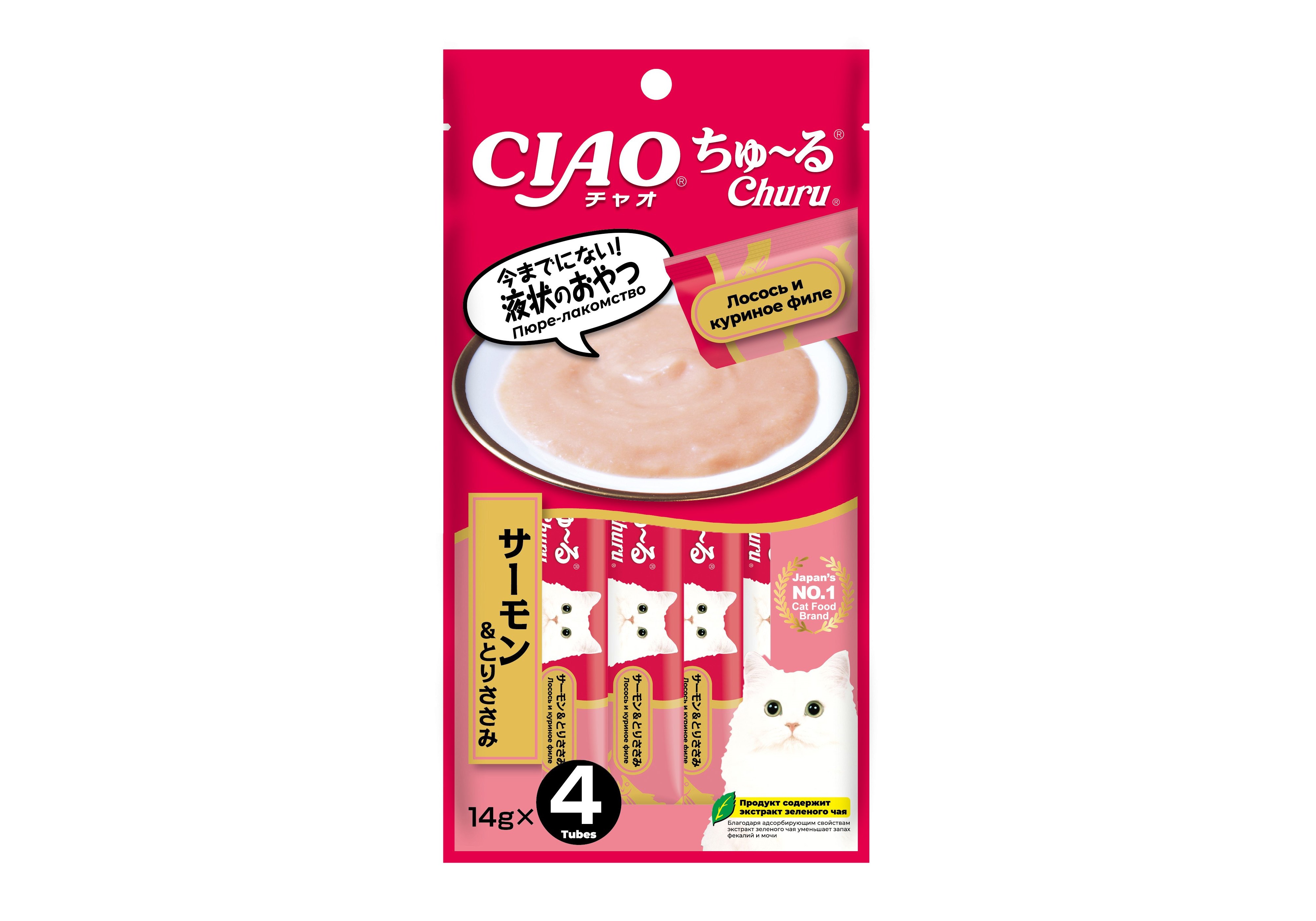 Inaba Ciao Churu Лакомство-пюре Инаба для кошек Лосось и куриное филе 14г х 4шт