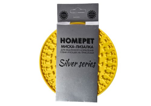 Homepet Silver Series Миска-лизалка Хоумпет для собак и кошек для медленного кормления на присосках Желтая D 15 см х 0,6 см