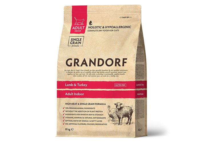 Grandorf Holistic & Hypoallergenic Indoor Lamb & Turkey Сухой корм Грандорф Низкозерновой для домашних кошек Ягненок Индейка 8 кг