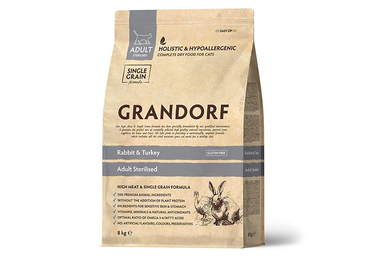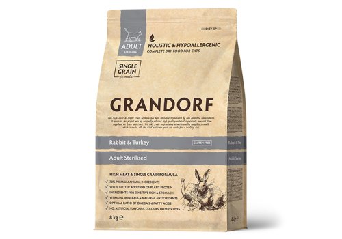 Grandorf Holistic & Hypoallergenic Sterilized Adult Rabbit & Turkey Сухой корм Грандорф Низкозерновой для Стерилизованных кошек Кролик Индейка 8 кг