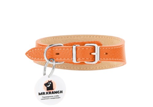 Mr.Kranch Ошейник-cеледка Мистер Кранч для собак из Натуральной кожи с QR-адресником Оранжевый 19 - 23 см
