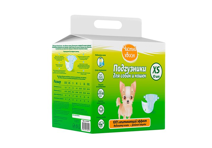 Чистый хвост Впитывающие подгузники для собак и кошек с индикатором влаги XS 2-4кг 10шт