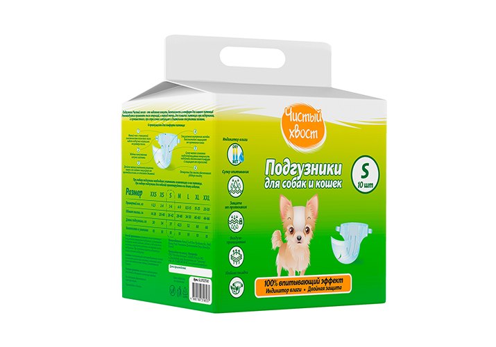 Чистый хвост Впитывающие подгузники для собак и кошек с индикатором влаги S 3-6кг 10шт