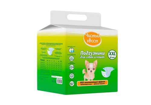 Чистый хвост Впитывающие подгузники для собак и кошек с индикатором влаги XXL 20-30кг 10шт