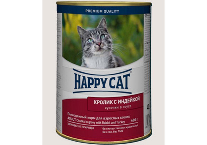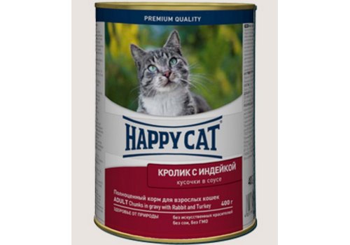 Happy Cat Консервы Хэппи Кэт для кошек кусочки в Соусе Кролик и Индейка (цена за упаковку) 400г x 12шт