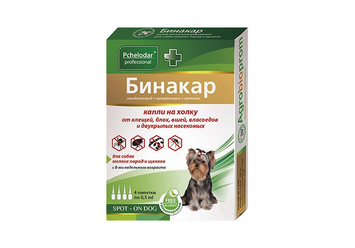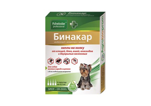 Pchelodar Бинакар капли на холку от блох вшей и власоедов для собак мелких пород 1пипетка на 5кг 0,5 мл / 4 пипетки