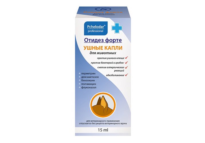 Pchelodar Отидез форте Ушные капли для лечения отитов для собак и кошек 15 мл