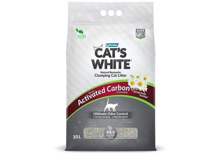 Cat's White Activated Carbon Spring Fresh Комкующийся наполнитель Кэтс Уайт для кошачьего туалета с Активированным углем и ароматом Весенней свежести 10 л
