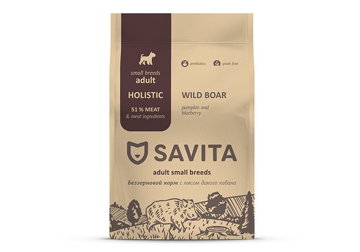 Savita Adult Small Breeds Wild Boar Сухой Беззерновой корм Савита для взрослых собак Мелких пород с мясом Кабана 1 кг