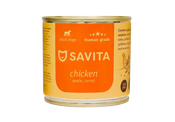 Savita Влажный корм Консервы Савита для собак Курица с яблоком и морковью (цена за упаковку) 240г х 24шт