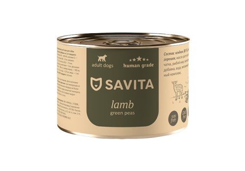 Savita Влажный корм Консервы Савита для собак Ягненок с зеленым горошком (цена за упаковку) 410г х 24шт