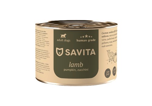 Savita Влажный корм Консервы Савита для собак Ягненок с тыквой и кабачками (цена за упаковку) 410г х 24шт