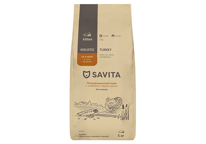 Savita Kitten Turkey Сухой корм Савита для Котят Индейка и бурый рис 5 кг