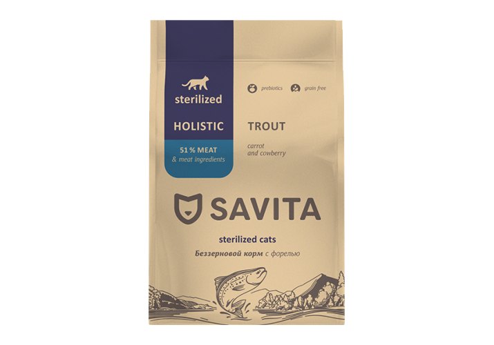 Savita Sterilized Trout Сухой Беззерновой корм Савита для Стерилизованных кошек с Форелью 5 кг