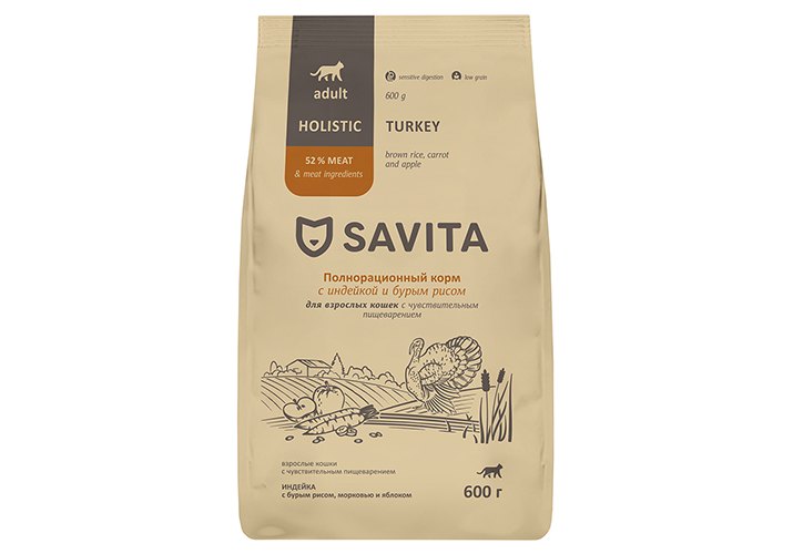 Savita Sensitive Digestion Adult Turkey Сухой корм Савита для кошек с Чувствительным пищеварением Индейка и бурый рис 600 г