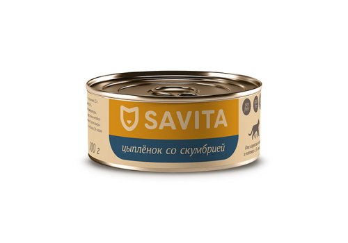 Savita Влажный корм Консервы Савита для кошек всех возрастов Цыплёнок со скумбрией (цена за упаковку) 100г х 12шт