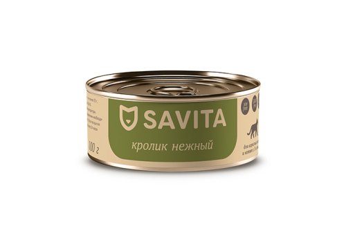 Savita Влажный корм Консервы Савита для кошек всех возрастов Кролик нежный (цена за упаковку) 100г х 12шт