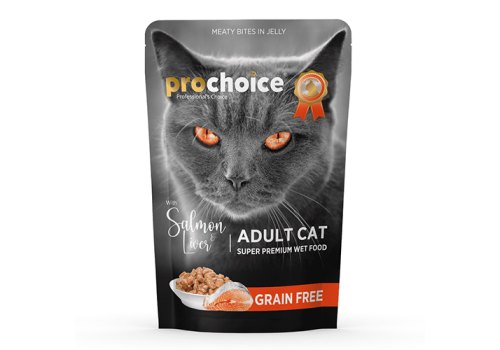 Prochoice Cat Adult Salmon Liver Grain free meaty bites in jelly Влажный корм Паучи Прочойс для взрослых кошек с Лососем и печенью кусочки в желе (цена за упаковку) 85г х 24шт