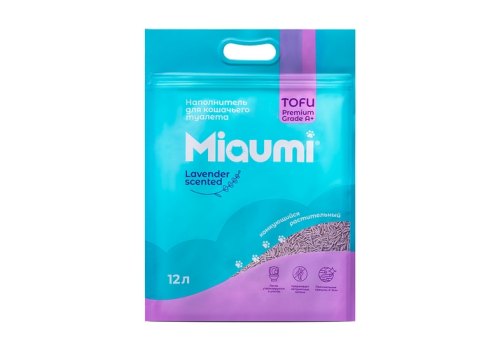 Miaumi Tofu Lavender scented Комкующийся наполнитель Мяуми для кошачьего туалета с ароматом Лаванды 12 л