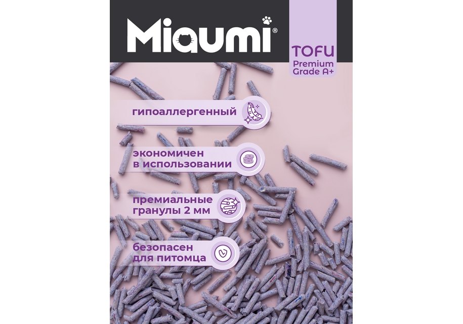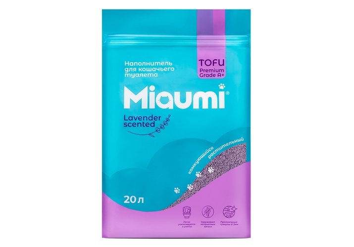 Miaumi Tofu Lavender scented Комкующийся наполнитель Мяуми для кошачьего туалета с ароматом Лаванды 20 л
